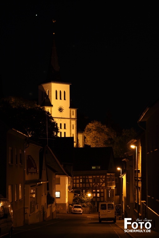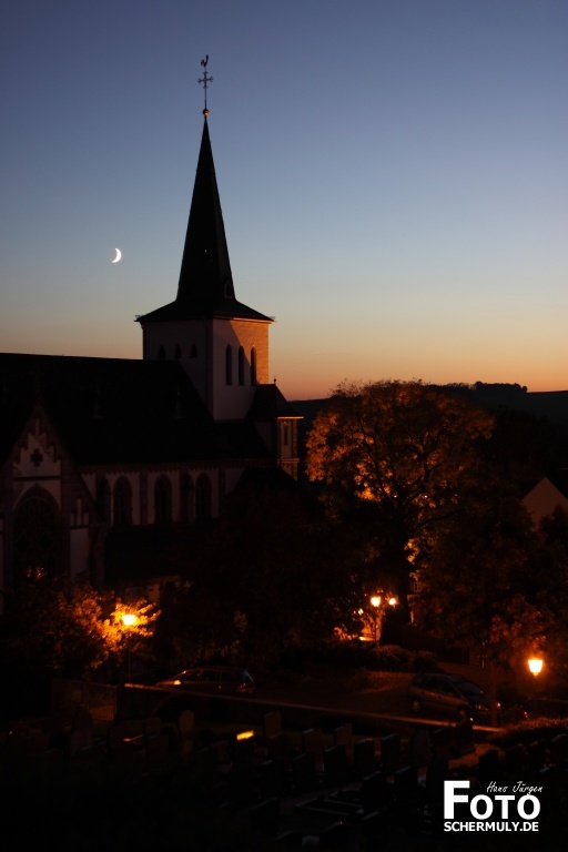 Der Mond leuchtet über der Kirche